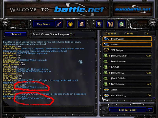Segue a Imagem com os player dando rem no 10... Nick's: Neuzim, [Hell]Roots, [HARD]w4ll, [HARD]^Gramaxt